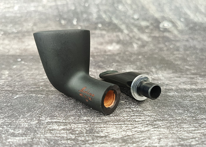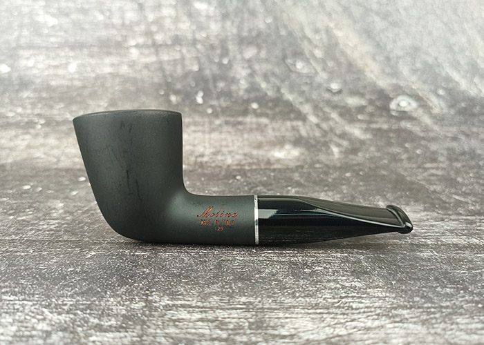 ไปป์ Molina จากอิตาลี คอลเลคชั่น Shorty Black โมเดล 125 เป็นไปป์ทรง Dublin ตรง ที่มีขนาดค่อนข้างสั้น ลักษณะเด่นคือมีช่วงฐานเบ้าแคบ และบานออกที่ด้านบน มองจากรูปลักษณ์โดยรวม นับว่าเป็น Pocket Pipe ที่เหมาะกับการพกพาออกนอกสถานที่มากๆ เพราะทั้ง Stem และ Mouthpiece ค่อนข้างหนา มีความแข็งแรง ไม่บอบบางจนหักง่าย ส่วนขนาดบรรจุยาเส้นของเบ้าด้านใน ถือว่าเท่ากับไปป์ไซส์กลาง ตัวนี้รองรับการใส่ฟิลเตอร์แบบ 9mm.