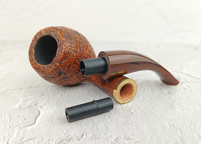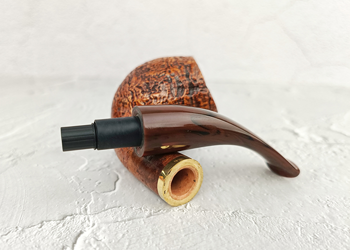 ไปป์ Molina Striato Sandblasted 103 สวยงามด้วยพื้นผิวขรุขระแบบ Sandblasted ที่ขับให้เส้นลายไม้เด่นนูนออกมา จนผู้สูบสัมผัสได้ถึง Texture ตามธรรมชาติของไม้บราย (Briar) อีกทั้งยังมีการไล่เฉดสีน้ำตาล เข้ม-อ่อน ให้เกิดมิติ บนพื้นผิว และร่องไม้ ประดับด้วยวงแหวนสีทอง เพิ่มความหรูหรา ส่วน Mouthpiece ทำจากอะคริลิค โทนสีน้ำตาลเข้ม นับว่าเป็นไปป์ที่สวยงาม สูบง่าย ดูแลรักษาไม่ยาก เหมาะกับผู้สูบทุกระดับ