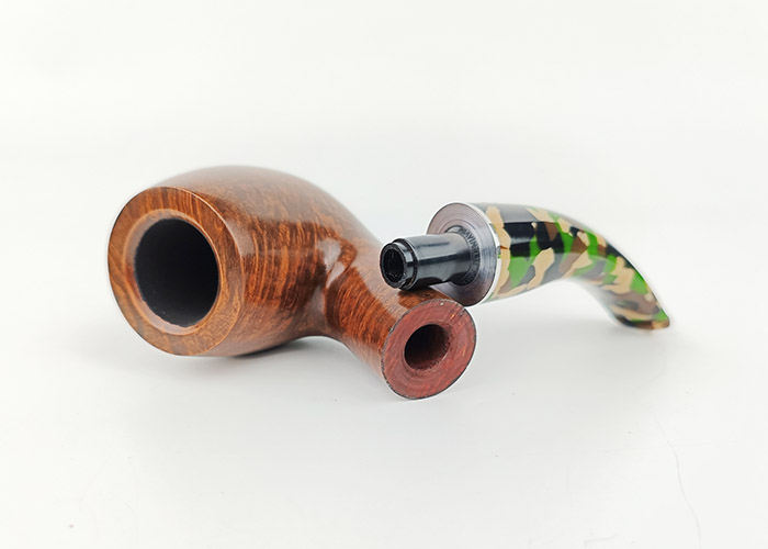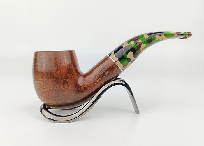 สำหรับ ไปป์ Savinelli Camouflage จะมีให้เลือก 2 เนื้อคือแบบ Rusticated กับที่แบบ Smooth โชว์ลายไม้ จุดเด่นคือการออกแบบ Mouthpiece อะคริลิคให้เป็นสี “ลายพราง” ซึ่งเป็นสิ่งที่ทำให้นึกถึงเสื้อผ้าของทหาร และป่าไม้ ใบหญ้า ตรงกลางประดับด้วยวงแหวนสีเงินวงเล็ก เพิ่มความสง่างาม ดูลงตัว