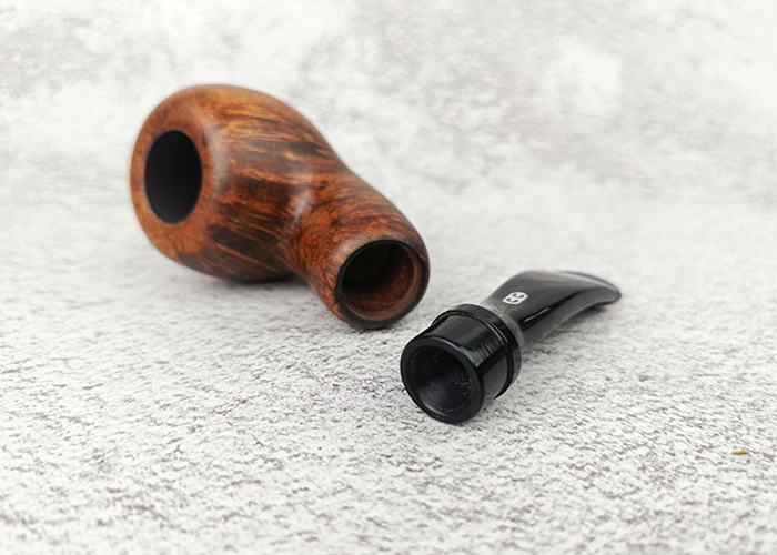 ไปป์ Chacom Brown Matte Bent Apple Reverse Calabash คือการใช้เทคนิคพลิกกลับของ ไปป์ทรง Calabash ที่เราคุ้นชินกับดีไซน์ไปป์ที่ฐานแคบ และบานออกด้านบน โดยการประยุกต์ระบบนี้ในแนวทางแบบ Reverse คือ “ทำระบบนี้ที่ด้านใน” แทนที่จะอยู่ด้านนอกอย่างที่เคยเป็น คือมีการเจาะช่องว่างพิเศษอยู่ภายในก้าน ก่อนจะถึงปากคาบ ซึ่งหน้าที่ของมันคือช่วยให้ควันที่ร้อนจากเบ้าได้ขยายตัวและเย็นลงก่อนถึงปาก รวมถึงช่วยกักเก็บความชื้น ทำให้ได้รสชาติที่นุ่มนวล ด้านการดีไซน์มาในรูปทรง Bent Apple ที่อวบอิ่มแต่มีขนาดกะทัดรัด รุ่นนี้ได้รับการตอบรับที่ดีมาก ทั้งในแง่ของความสวยงาม และการใช้งานจริง เป็นอีกรุ่นที่ทาง Origin Pipe Club สั่งเข้ามาเพิ่มในสต็อกเสมอ