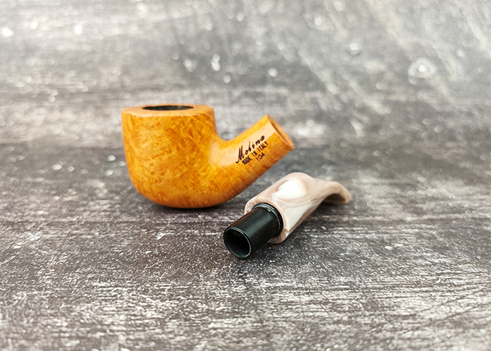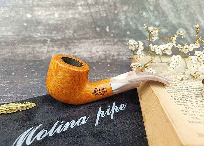 ไปป์ Molina Peppino Natural 134R 9mm (ในรหัสเดิมคือ 104) เป็นอีกหนึ่งรุ่นในคอลเลคชั่น Peppino ที่ได้รับความนิยม เนื่องจากเป็นไปป์ทรง Bent Pot ซึ่งมีจุดเด่นคือ Bowl ที่มีขนาดค่อนข้างกว้างและเตี้ยกว่าทรง Billiard ทั่วไป และมีก้านที่โค้ง เล็กน้อย มีความยาวประมาณ 109 มม. ซึ่งจัดอยู่ในไปป์ขนาดเล็กพกพาง่าย น้ำหนักประมาณ 31 กรัม เส้นผ่านศูนย์กลางภายในเบ้า 19 มม. และลึก 32 มม. ซึ่งถือว่ามีความจุไม่มากเกินไป เหมาะกับการสูบช่วงสั้นๆ ระบบกรองรองรับฟิลเตอร์ขนาด 9 มม.