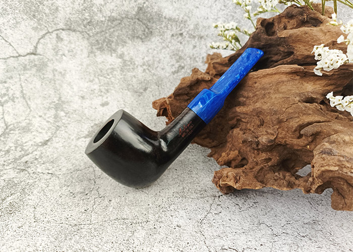 ไปป์ Molina Azzurro Smooth 104 9mm ตัวนี้ได้แรงบันดาลใจมาจากคำว่า Azzurro หรือ Azure ที่แปลว่าสีฟ้า หรือท้องฟ้า ซึ่งเป็นที่มาของการดีไซน์ส่วน Mouthpiece ให้เป็นสีน้ำเงิน มีลวดลายวนสีขาว แบบอิสระ คล้ายก้อนเมฆ ทำให้ดูโดดเด่นสดใส กว่ารุ่นอื่นๆ ที่เน้นความเรียบหรูแบบผู้ใหญ่เป็นหลัก ในขณะที่เบ้ามีสีน้ำตาลเทาเข้ม แบบ Smoky Grey มองเห็นลวดลายไม้ธรรมชาติ เหมาะกับนักสูบที่กำลังมองหาไปป์ที่สูบได้เรื่อยๆ ในเวลาไม่เร่งรีบ เบ้าไปป์ไม่ร้อนเร็ว เน้นการสูบที่ต้องผ่านตัวกรอง โดยสรุปแล้ว นับว่าเป็นรุ่นที่มีความคุ้มค่าคุ้มราคา มาพร้อมถุงผ้ากำมะหยี่สีเขียวมิ้นท์