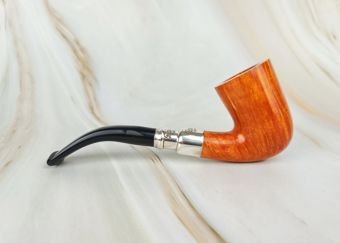นอกจากเรื่องของรูปทรงการออกแบบตัวไปป์แล้ว แบรนด์ Peterson ยังขึ้นชื่อเรื่องการออกแบบเครื่องเงิน ซึ่งการที่จะเข้ามาทำงานในฐานะช่างเครื่องเงินของ Peterson จะต้องผ่านประสบการณ์ทำงานมาแล้วหลายปี จากช่างอาวุโส เพื่อให้ได้มาตรฐานเดียวกัน โดยคอลเลคชั่น Spigot นี้ ถูกปล่อยออกมาครั้งแรกในปี 1977 หลังจากที่ได้ไอเดียมาจากแคตตาล็อกเก่าของ Peterson ตั้งแต่ปี 1906 และนอกจากเรื่องความสวยงามแล้ว การที่มีวงแหวนเงินหุ้มทั้งส่วนปลาย Shank และส่วนต้นของ Mouthpiece นี้ ยังเพิ่มความแข็งแรง คงทน ให้กับตัวไปป์ ไม่ให้แตกหักง่าย ซึ่งคอลเลคชั่นที่เห็นอยู่นี้ คือ Peterson Natural Spigot ที่ถือว่าเป็นเกรดพรีเมี่ยมอีกรุ่นนึงของแบรนด์ เพราะไม้ที่เลือกมาทำไปป์คอลเลคชั่นนี้จะต้องสวยงาม มีเส้นลายไม้ชัดเจน จนช่างกล้าที่จะใช้สีไม้โทนอ่อน เพื่อเปิดเผยลายไม้จริง เหมาะกับคนที่หลงใหลในความงดงามตามธรรมชาติของ Briar Grain ที่นับว่าหายากมากในปัจจุบัน